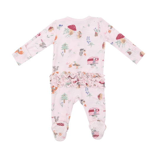 2 Way Ruffle Zipper Footie - Cute Animal Campers
