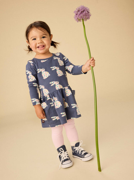 Long Sleeve Pocket Baby Dress - Rice Ball Dot Bunny