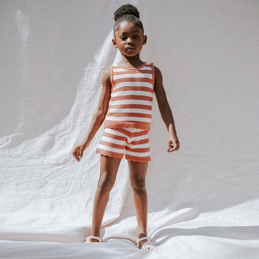 Crochet Knit Toddler Tank Top - Apricot + Birch Stripe