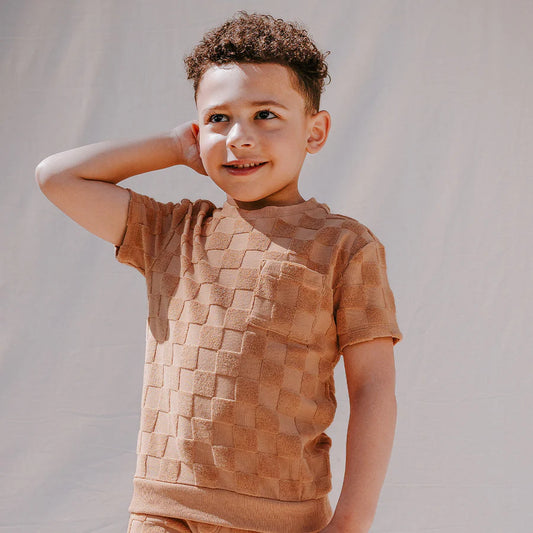 Embossed Terry Cloth Toddler Top - Rosewood Checkerboard