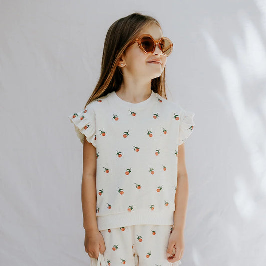 Ruffle Terry Cloth Toddler Top - Birch Oranges