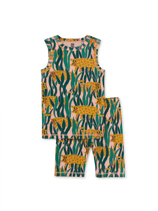 Short-Sleeve + Shorts Two Piece Pajama Set - Natural Animal Parade