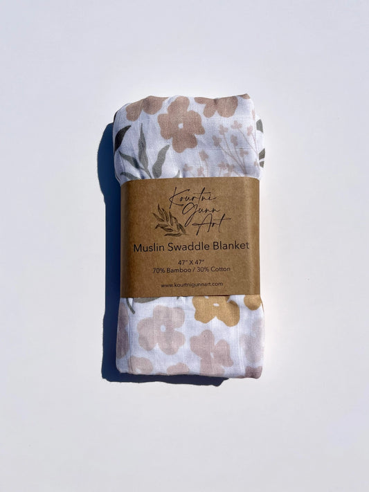 Swaddle blanket wildflower bee - Kourtni Gunn Art