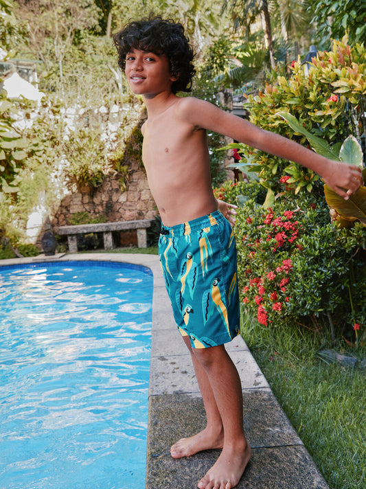 Mid-Length Swim Trunks - Blue & Yellow Macaws