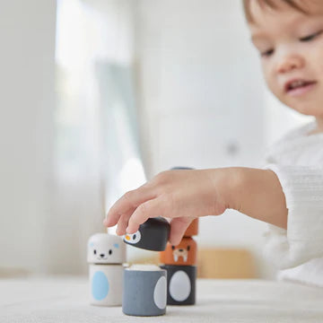 The PlanToy Arctic Animal Matching blocks are fun figures that you can stack, mix, and match to make your favorite winter animals. The piece connect with hook and loop tape. Little ones can mix and match the blocks of these arctic animals. The set includes a penguin, seal, walrus and fox. For advanced play, see how high you can stack all of the blocks.