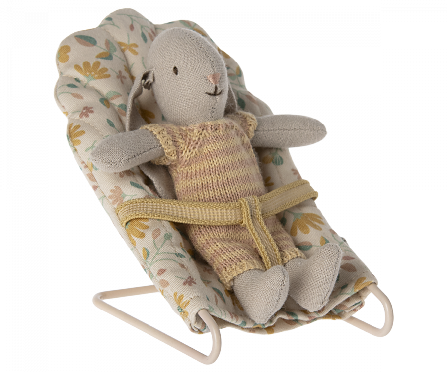 With this baby sitter, it is easy to put your little friends to sleep. The base is made of metal and covered by the most lovely fabric. The chair fits micro sized rabbits and bunnies and Teddy Baby perfectly.