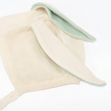 Babies will look ultra adorable wearing this gorgeous knitted organic cotton bonnet. It has the cutest floppy bunny ears with a lovely color on the inside. Would make a wonderful gift for Easter.