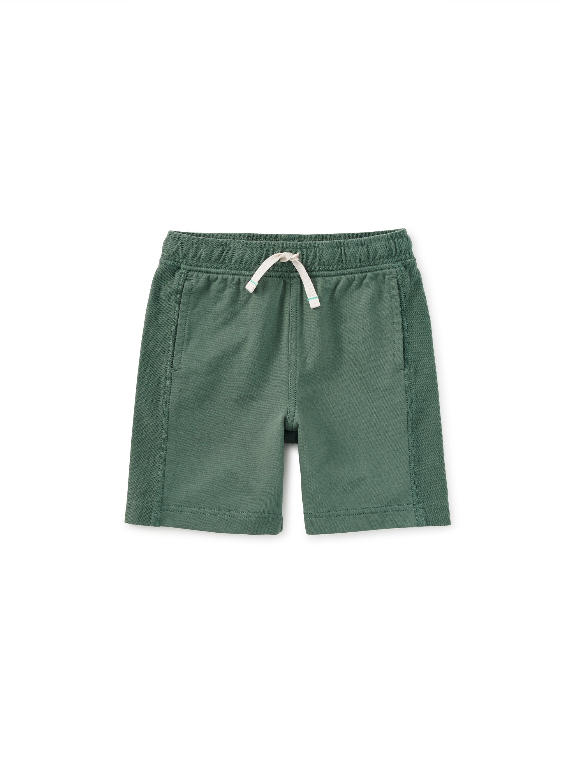 A fresh twist on our favorite knit shorts, made for nonstop movement. Designed in soft 100% French cotton terry, they feature a comfy elastic waistband with a fully functional drawcord, plus on-seam pockets for stashing treasures. A contrast side stripecreated with reversed fabricadds a sporty pop of texture. Thigh length for easy play-all-day style.