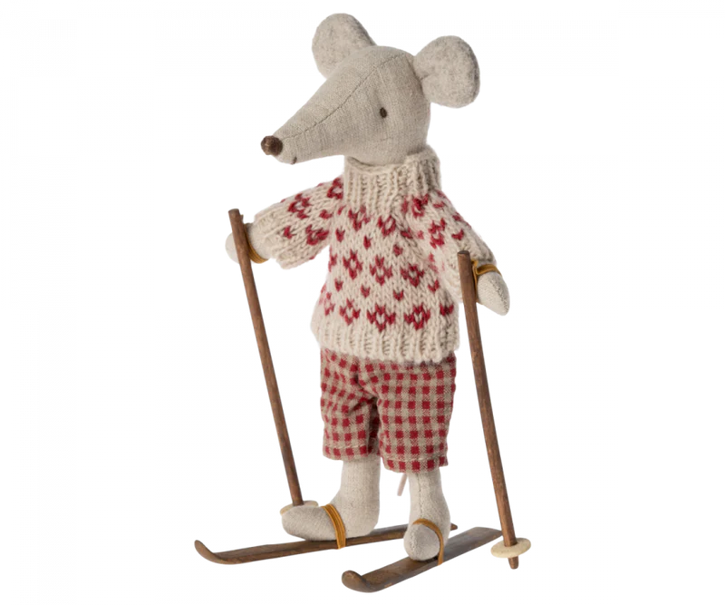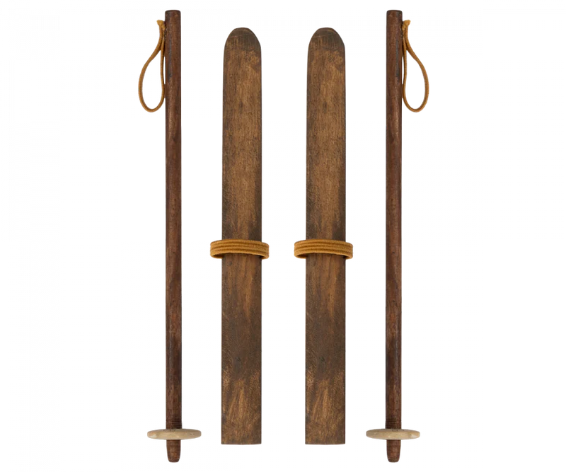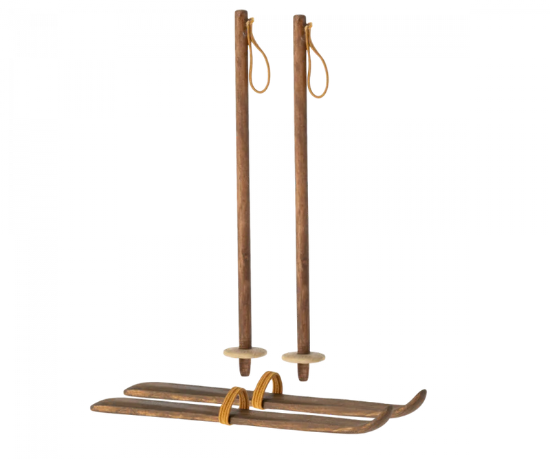 The perfect winter activity in the snow. With this set your mice can have a lovely day on the slopes. Ski and poles are made in wood and the elastic band makes it easy to fasten on mouse feet and paws. Fits Mum and Dad size mice.