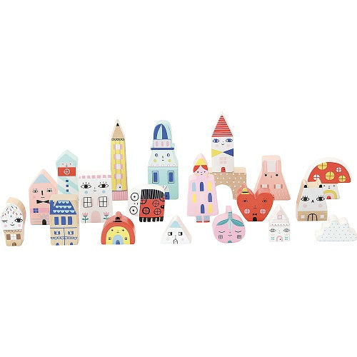Discover our pretty box of 20 wooden cubes, beautifully illustrated by Suzy ULTMAN. Your little one will enjoy building a town full of charm. His imagination and creativity will be able to freely express themselves, with the poetic characters.
