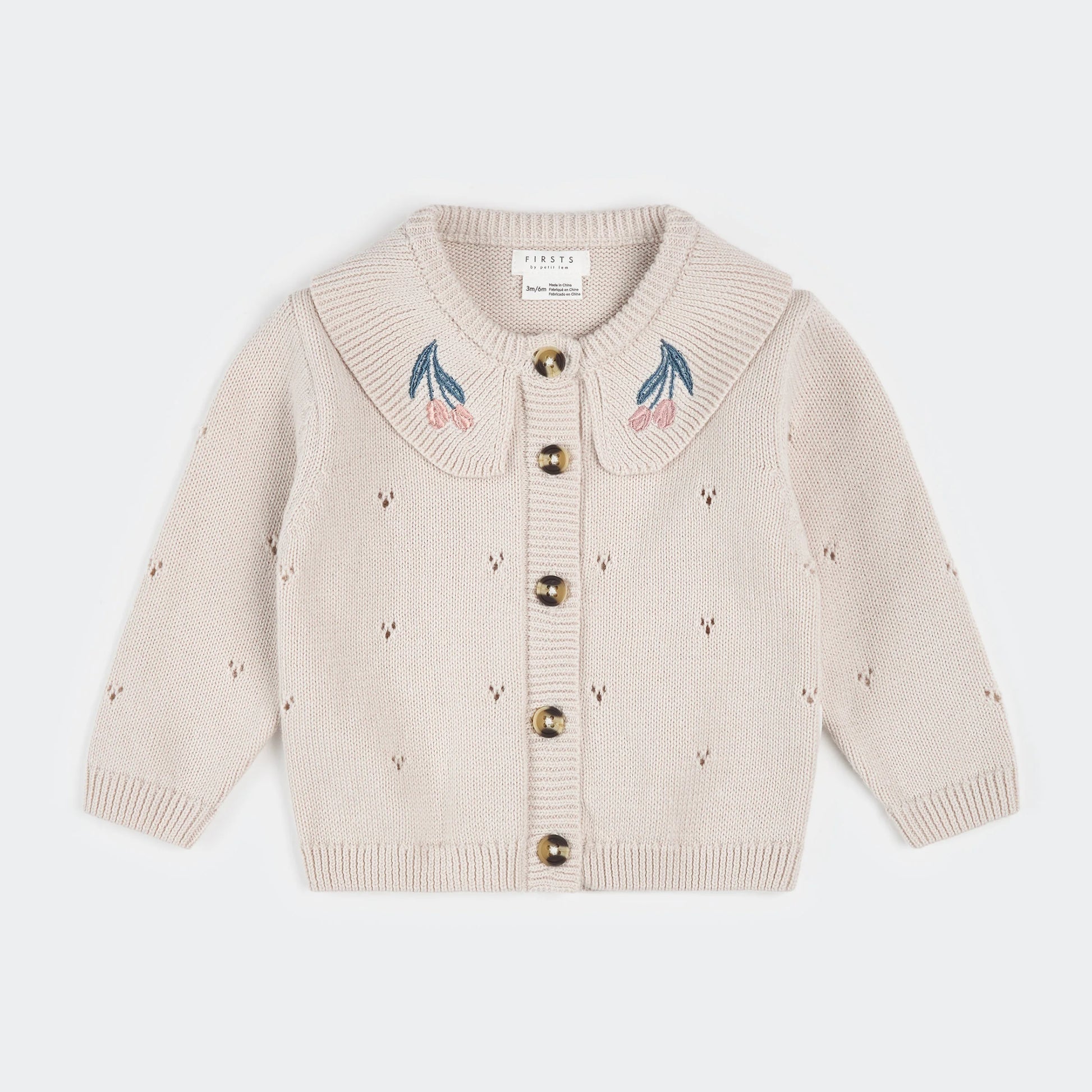Perfect for sunny adventures and special days, this pointelle knit cardigan with tulips embroidered onto the collar is like something straight out of a fairytale! The sweet piece is ideal for layering over little dresses for the last of the chilly spring mornings. Made with organically grown cotton, it’s incredibly soft and gentle on her skin.