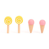 It's summer, it's hot, and Nini the mouse has made ice creams for the Grande Famille as a special treat. This wooden set comprises Nini, a parasol, 4 ice creams and an ice cream bike, which opens to keep the ice creams cold!