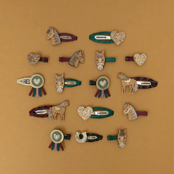 Giddy up and go with these wonderful new Horsey clic clacs! Two pretty ponies and two glittering gold hearts make up this super sweet pack - perfect for pony fans!