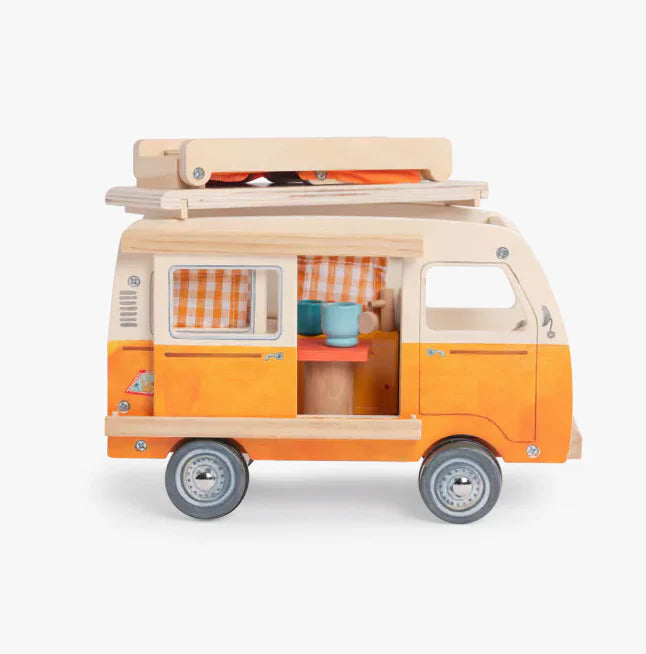 Tut tut! The Big Family's van is ready to hit the road and explore the world. Fully equipped, it includes all the camping essentials: table, bench seat, utensils, and a rooftop tent. Nothing better for a family getaway to the countryside!
