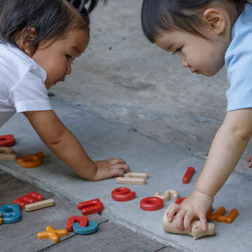 Develop your language skills with this alphabet set! 26 Lower case letters and 5 vowels are included to encourage communication and language practice (31 pieces in total). We use red colors for the vowels so children can begin to recognize vowels versus consonants. There is also a printable play card for viewing or download online.