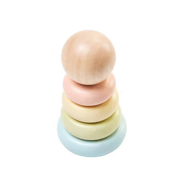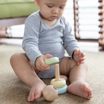 Start learning about size and order with this stacking ring. For safety precaution, the center rod is foldable.