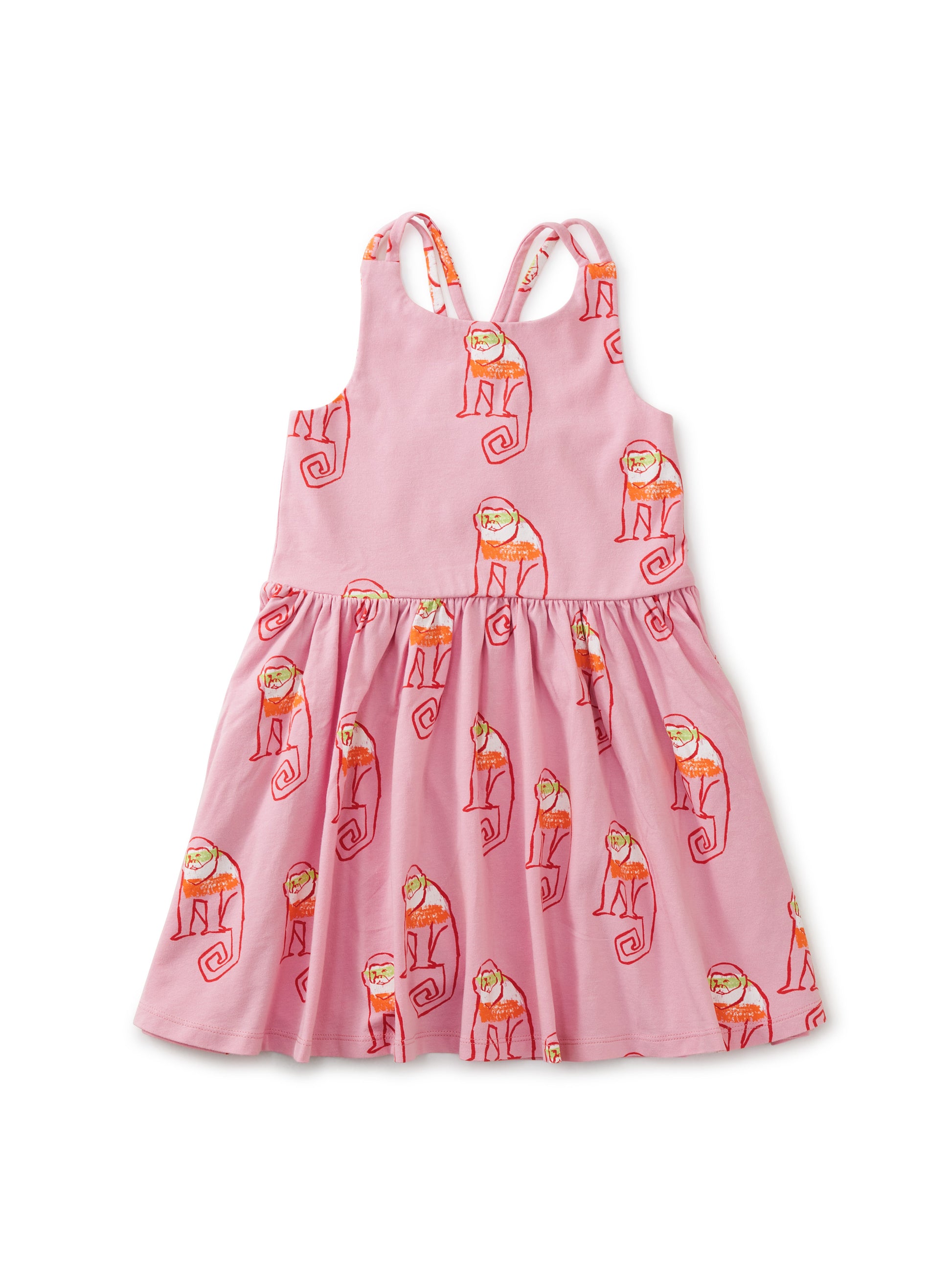 Strappy Back Skirted Toddler Dress - Cochin Monkeys in Pink