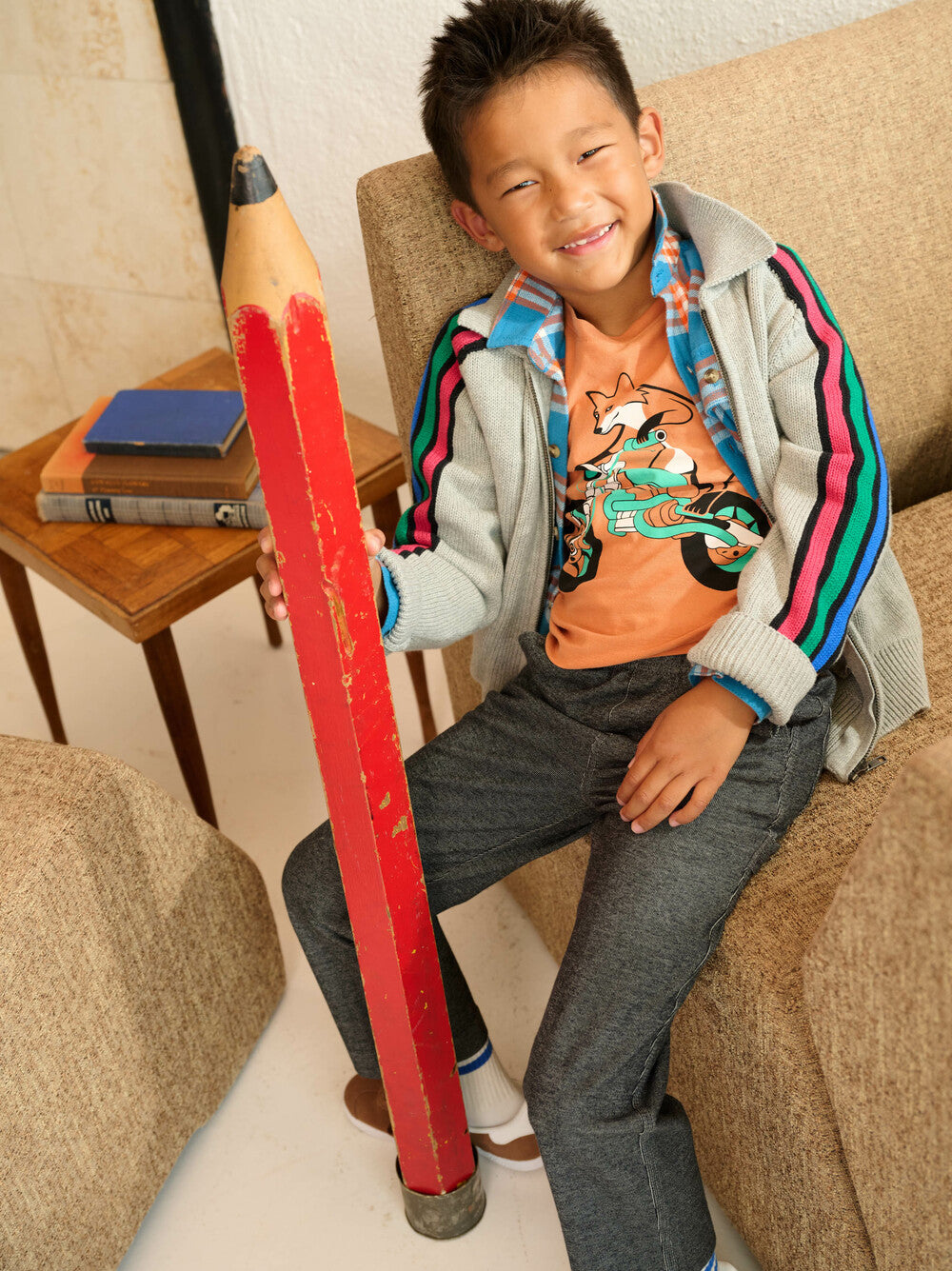 A sporty-chic layer designed to stand out, this zip-up sweater adds a playful burst of color to your little one's wardrobe. Crafted from soft, combed cotton for cozy warmth, it features bold multi-stripe detailing down each sleeve and a sleek zip-front closure. With its structured collar and ribbed trim, it's equal parts elevated and everyday-ready--perfect for chilly school mornings or weekend adventures. An heirloom-quality piece made to be passed down, complete with a handy name tag inside for easy identification at school or play.