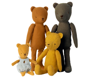The Teddy bear family is a sweet collection of 4 different sizes of Teddy bears. They are made of soft linen and have a vintage look.